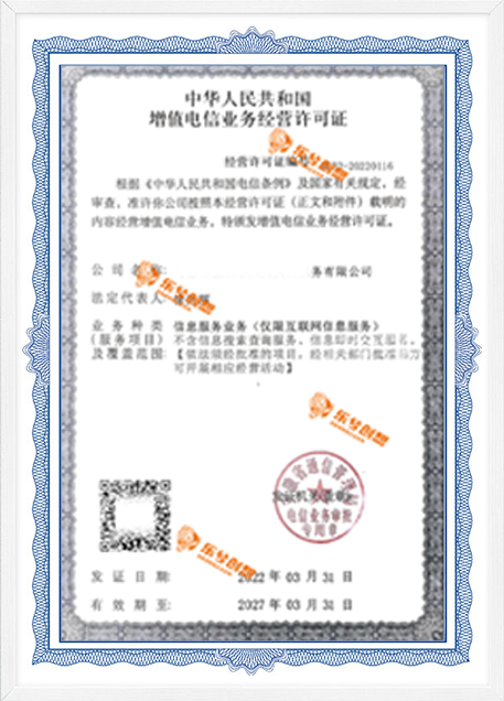 增值电信业务经营许可证是指利用公共网络基础设施提供的电信与信息服务的业务的许可证。国家对电信业务经营实行许可制度。经营电信业务,必须依照规定取得国务院信息产业主管部门或者省、 自治区、直辖市电信管理机构颁发的电信业务经营许可证。未取得电信业务经营许可证,任何组织或个人不得从事电信业务经营活动